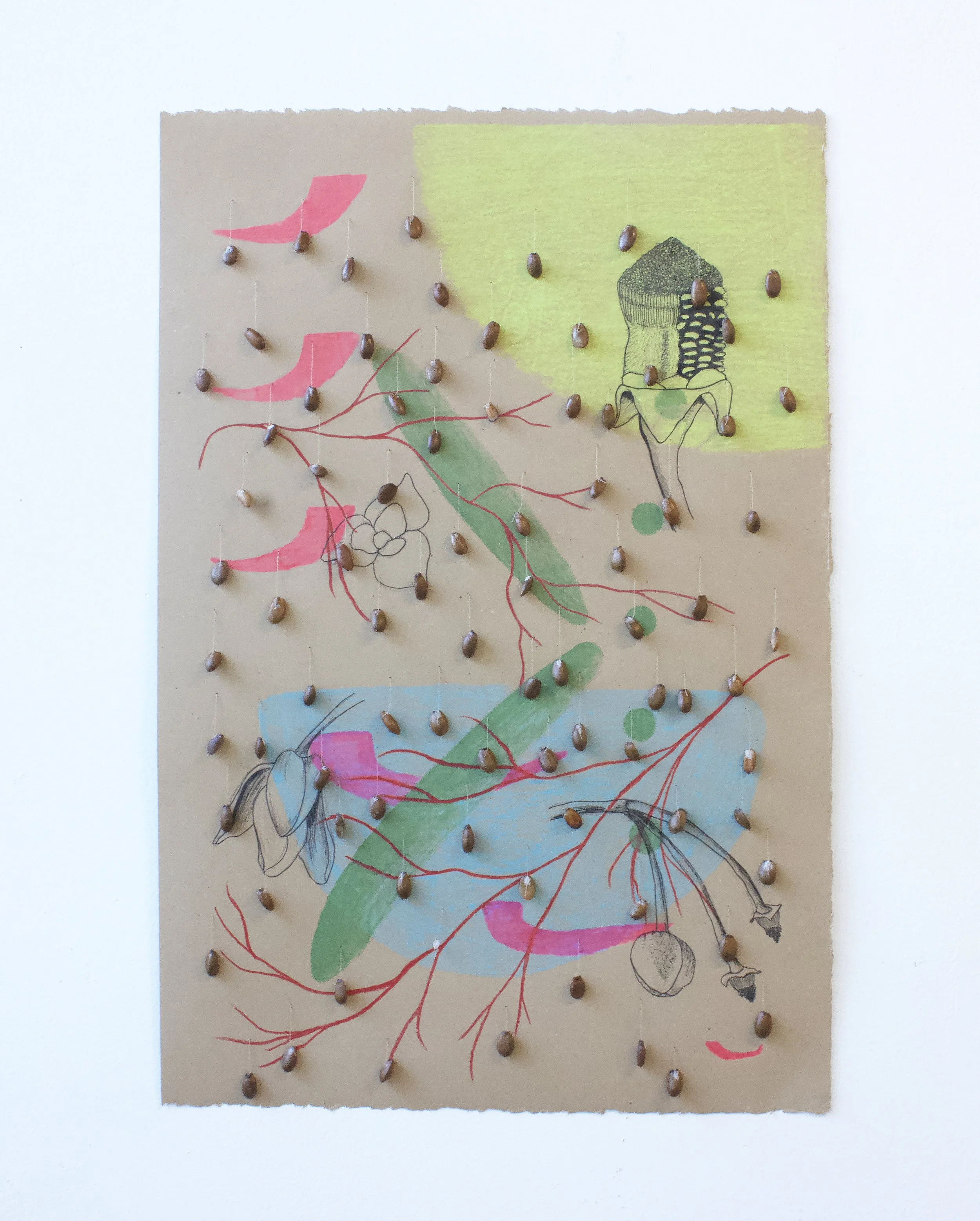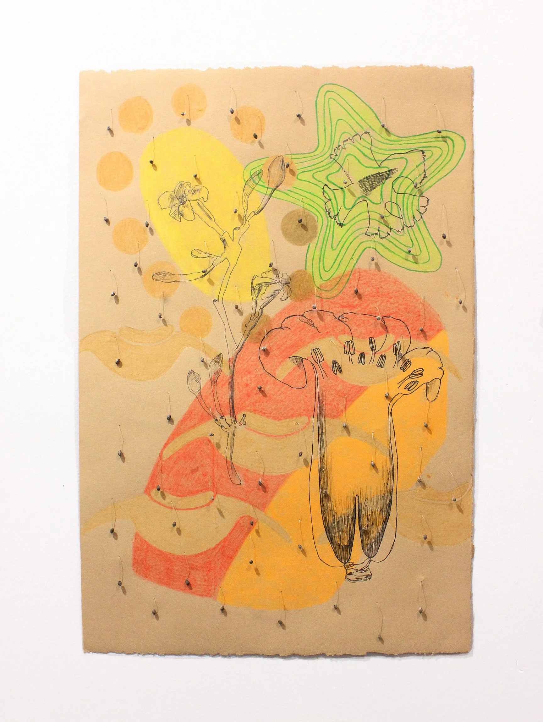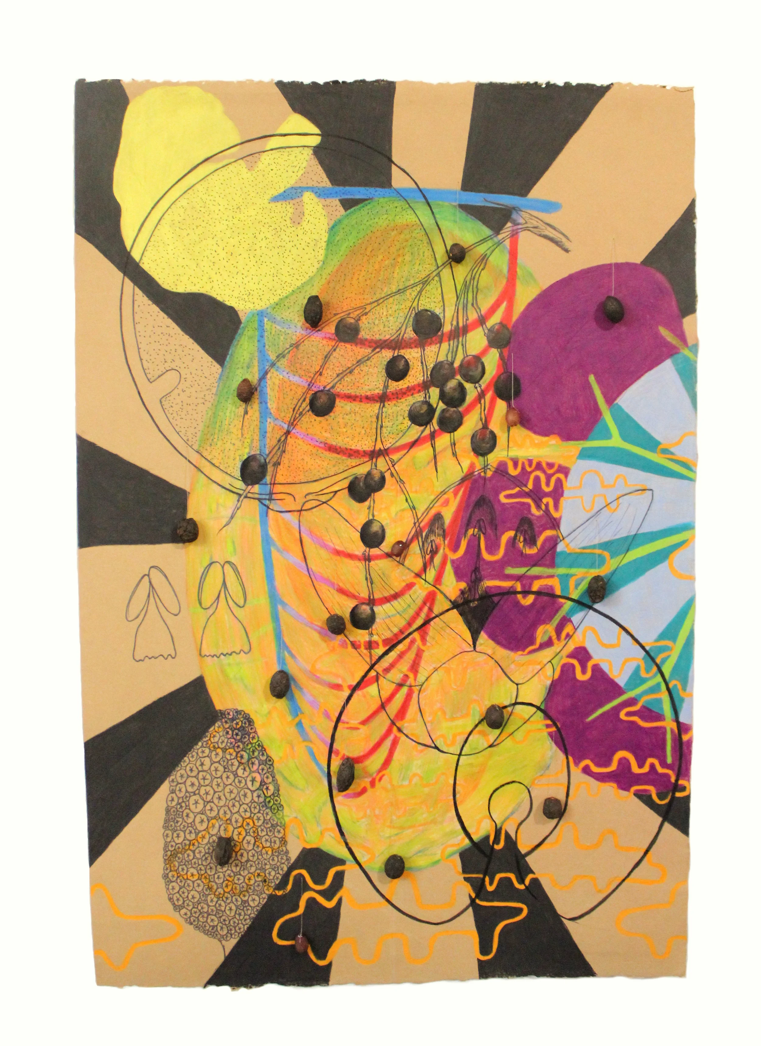 In this series of drawings I combine botanical illustrations of plants common to Taino and Caribbean people with “body field” illustrations. These body fields are an invention in my personal botanical practice where I envision a representation of the plants effects on the human body, in medicine and metaphysically, as well as an interpretation of the plant in the landscape it grows in.